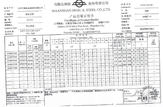 圖(1)Q345B鋼板即16Mn材質書